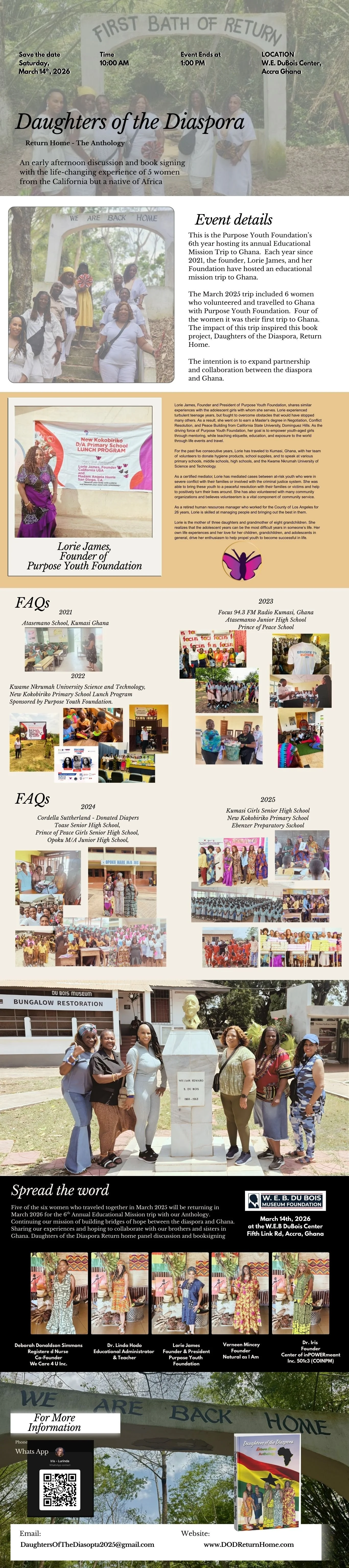 Lorie James is the founder and CEO of Purpose Youth Foundation. Annual mission trips to Ghana that blend service, cultural exchange, and personal growth for school-age girls and young ladies are a part of their purpose. In 2025, it was their 5th annual trip. She, along with the women in the Daughters of the Diaspora Return Home Anthology, delivered donations and empowering presentations to local schools, explored Ghana’s history and traditions, and participated in a moving naming ceremony welcoming them as “Daughters of the Diaspora.” Lorie shares her passion and traces the 5-year journey that fostered lasting connections and this powerful experience.