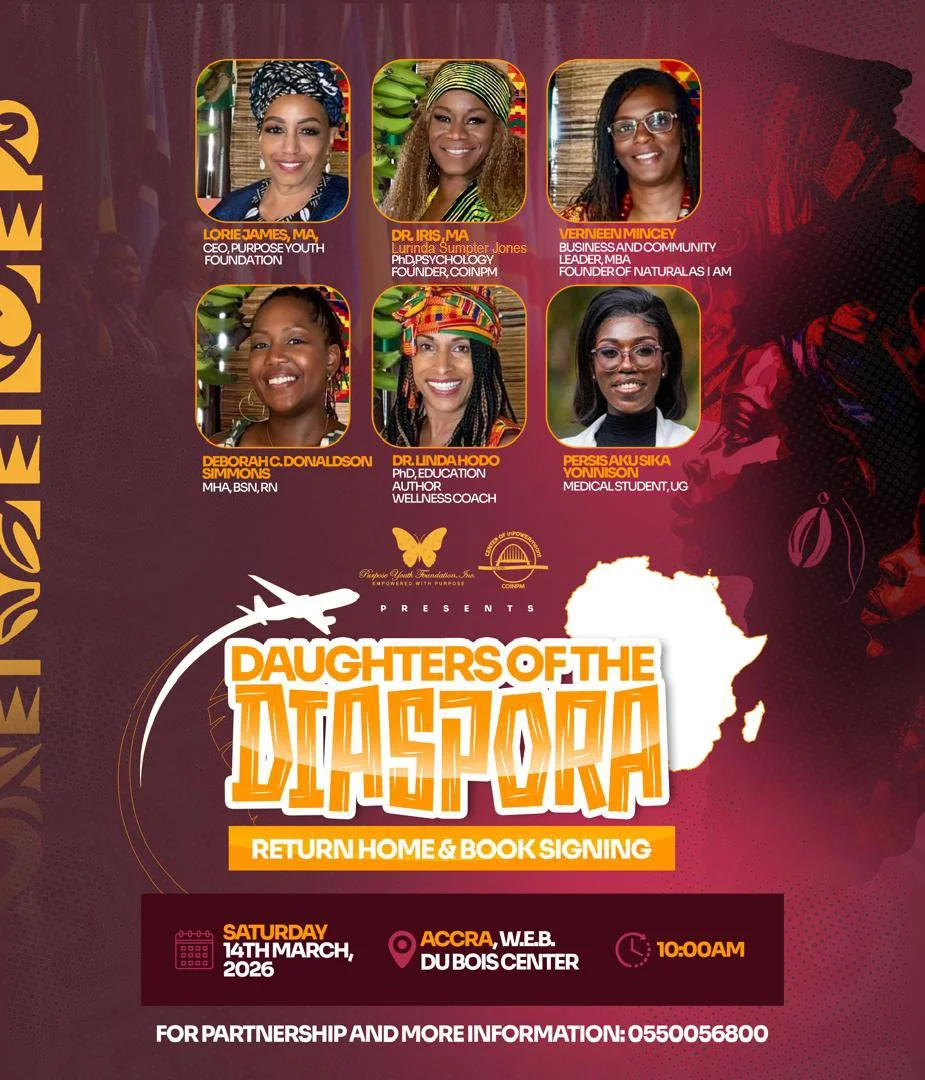 The program will be followed by a book signing for Daughters of the Diaspora: Return Home, an anthology by five women who traveled from Los Angeles to Ghana. The authors include Verneen Mincey, a member of the Fannie Lou Hamer Institute Steering Committee; Lorie James of the Purpose Youth Foundation; Deborah Donaldson Simmons of We Care 4 U, Inc.; Dr. Linda Hodo of All Things Wellness; and Dr. Iris of the Center of InPowerMeant Inc. 501(c)(3). We encourage you to pre-order your book, and it will be signed and ready for you at this event.